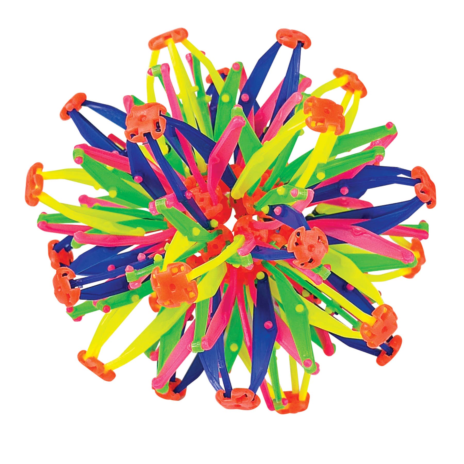 This colorful expandable ball is mesmerizing to watch and helps calm anxious children and adults. Focus on breathing in and out as you expand and contract the ball. Watch it expand and contract as you toss in the air and catch or roll it like a bowling ball. Warning - Choking Hazard - Small Parts. Expands from 6” to 12”
