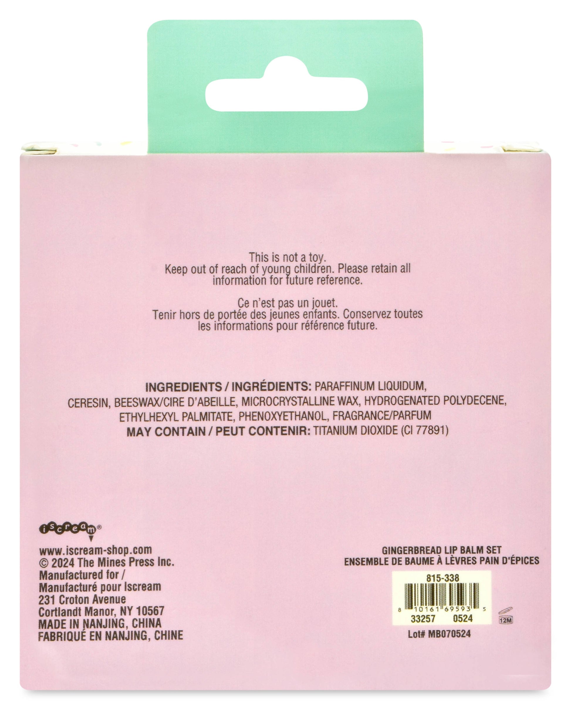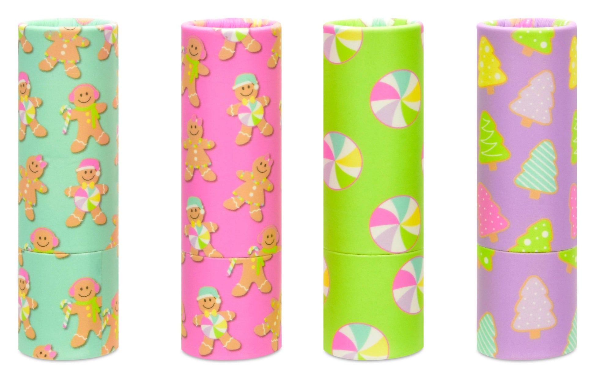 Iscream's Gingerbread Lip Balm Set includes four individual tubes of roll up lip balm. Each tube has it's own thoughtful holiday design.