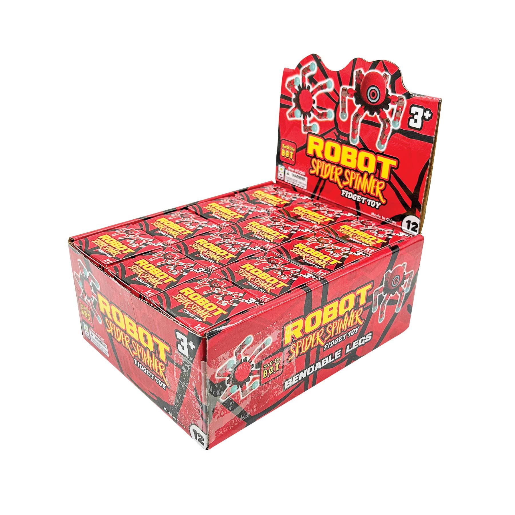 This black/red/blue/gray Robot Spider toy has it all: it spins, glows, has moveable legs, and answers questions! Ask a question - spin head for an answer. Blue feet glow in the dark. Makes a great desk pet, fidget toy! Stands 2 5/8” tall