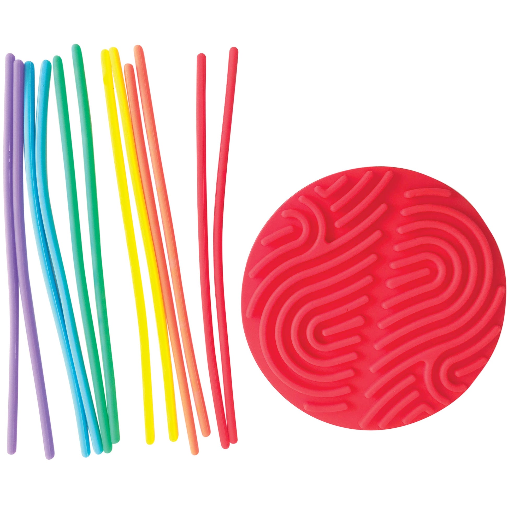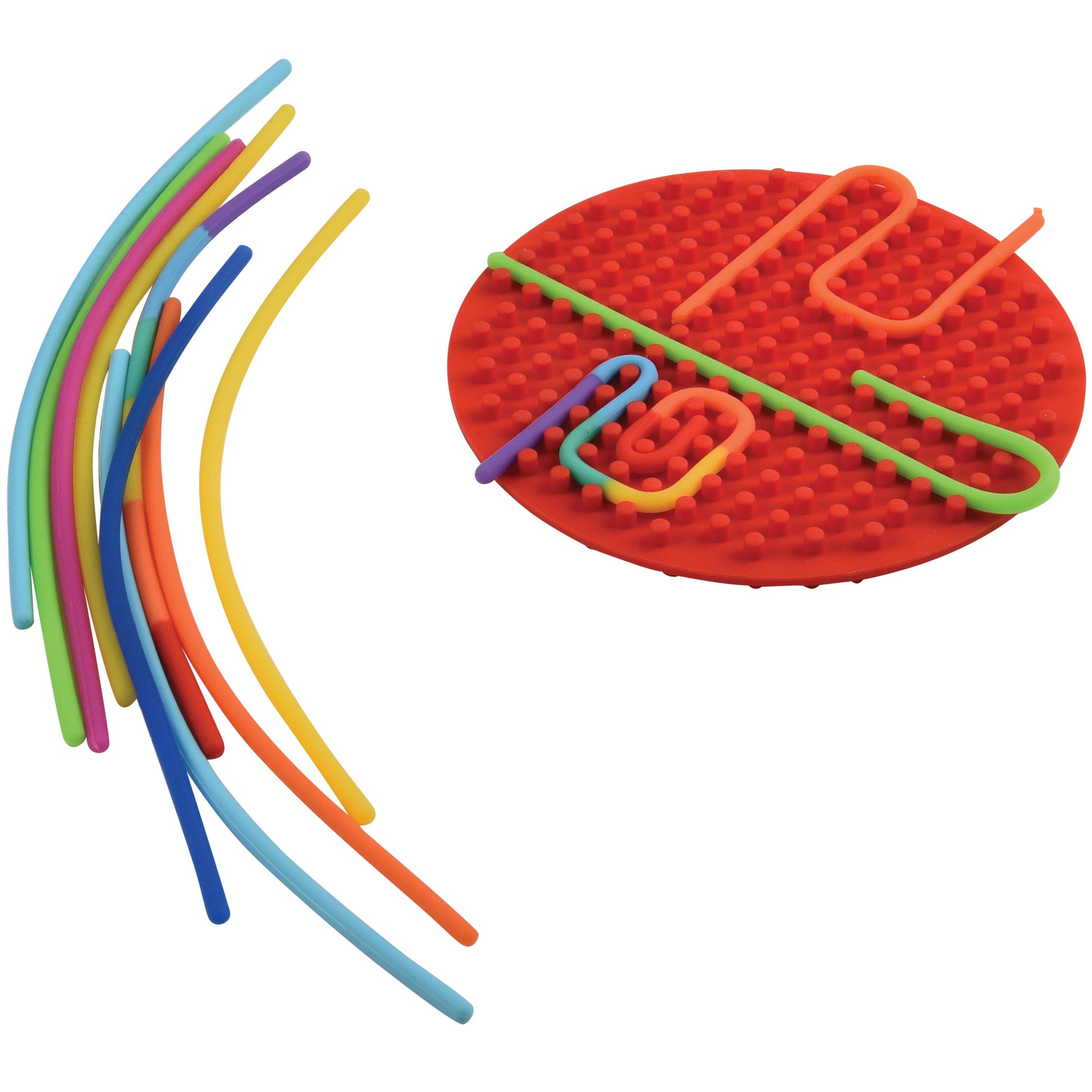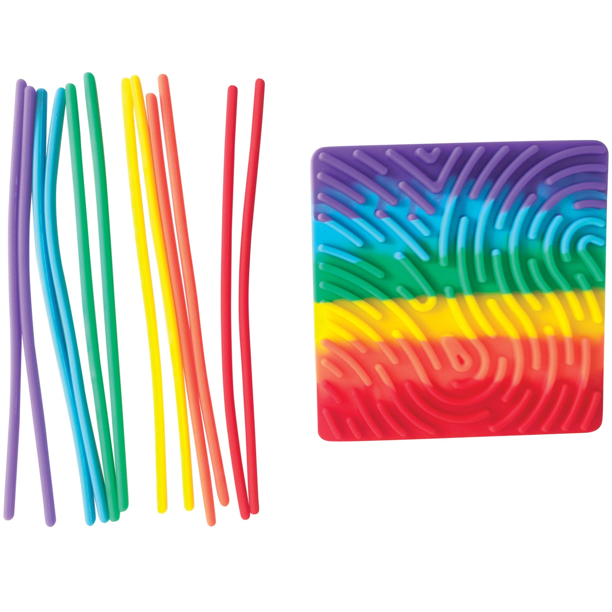 These silicone sensory boards are great for hand-eye coordination and working on fine motor skills. Two sided with different patterns for a variety of play. · Assorted styles include circle board in two colors and rainbow square board. · Made of silicone ·