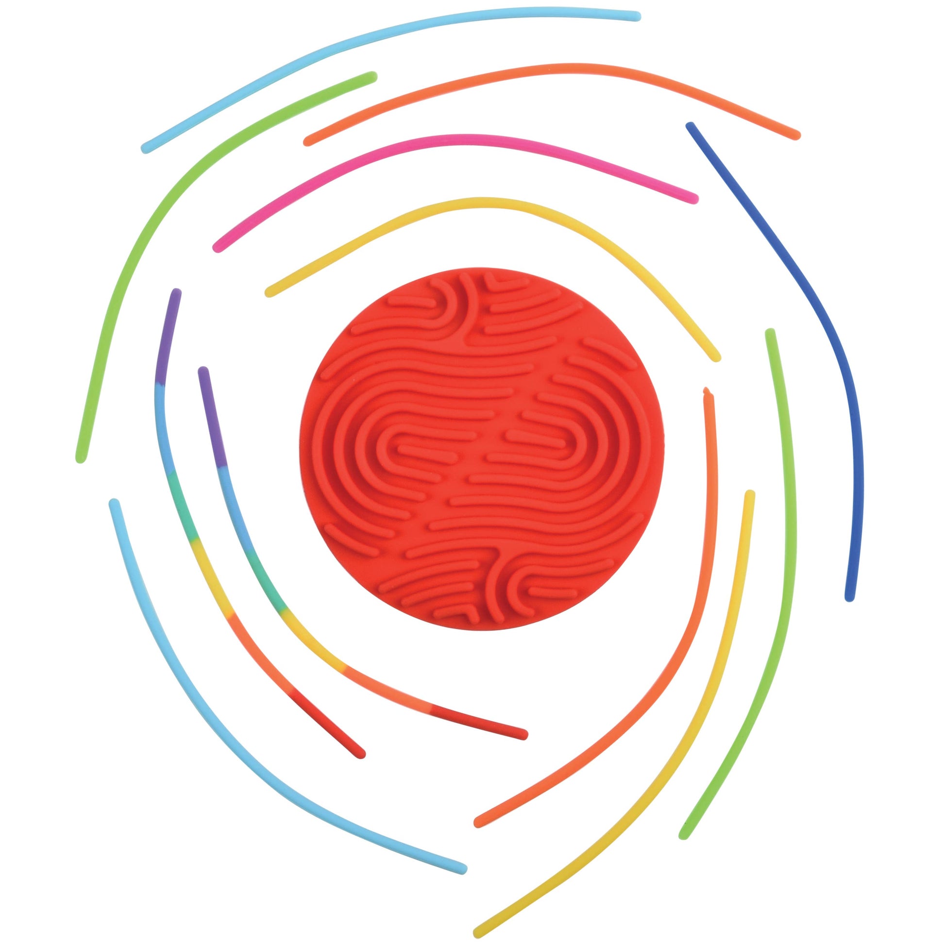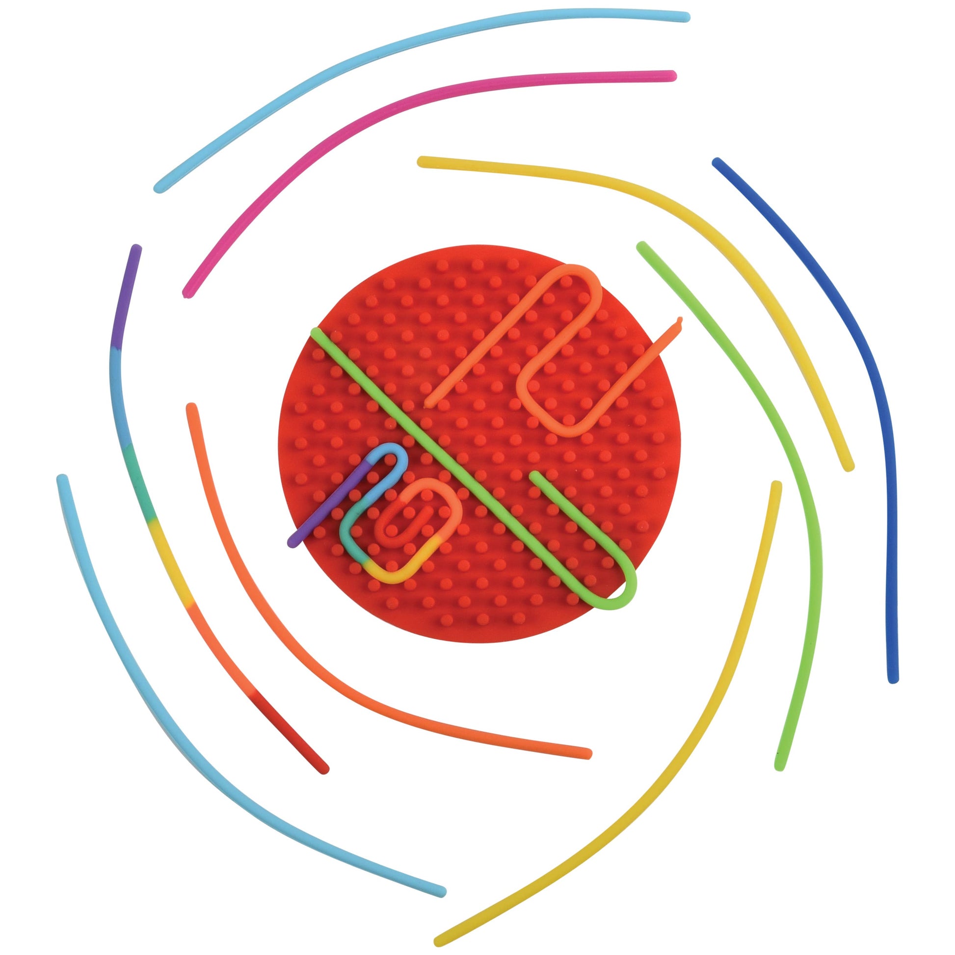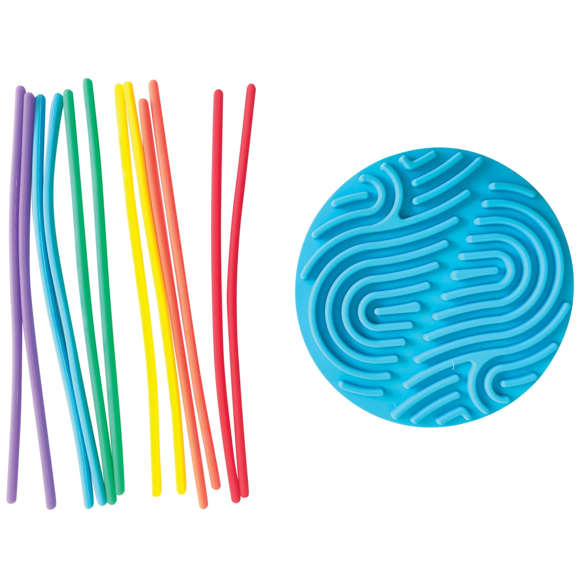These silicone sensory boards are great for hand-eye coordination and working on fine motor skills. Two sided with different patterns for a variety of play. · Assorted styles include circle board in two colors and rainbow square board. · Made of silicone ·